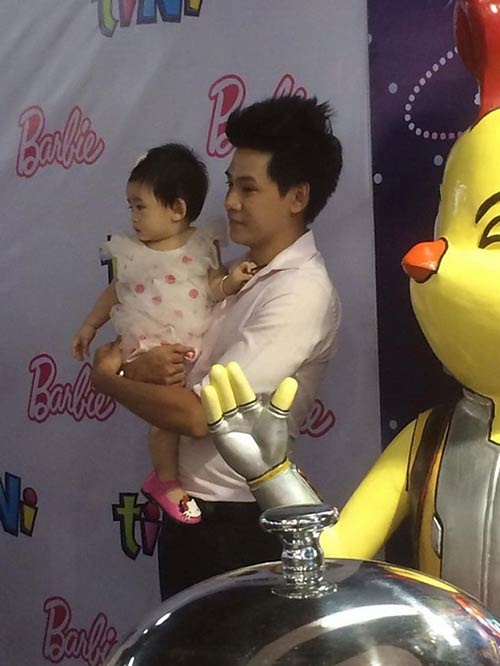 | Hình ảnh Phùng Ngọc Huy bế con gái Mai Phương trong đêm tiệc. |