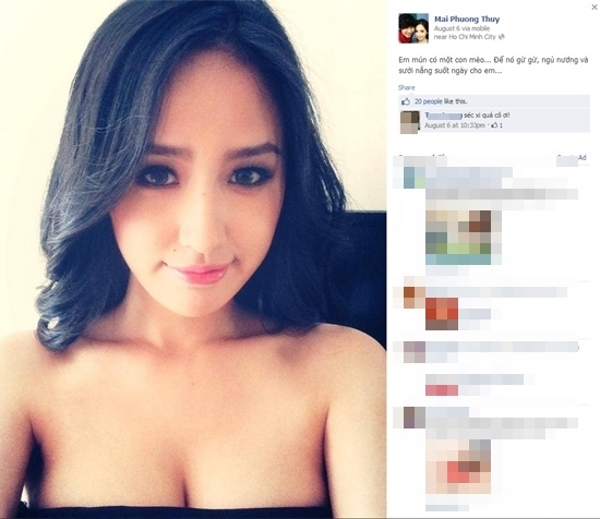 Mới đây, trên trang Fanpage được giới thiệu là Fanpage chính thức của Mai Phương Thúy đã đăng một bức ảnh khá nóng bỏng và dễ... hiểu lầm khi khoe một phần vòng 1 của cô. Bức ảnh "hút mắt" người nhìn sau khi đăng tải một thời gian ngắn, đã thu hút lượng like và comment lớn.