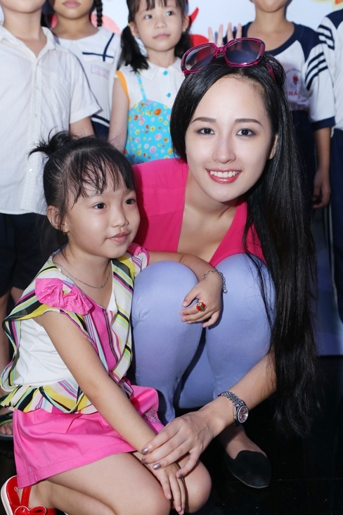 | Dù bị cướp và té ngã chảy máu nhưng Mai Phương Thúy vẫn tiếp tục tới dự sự kiện trao quà Trung thu cho các em nhỏ. |