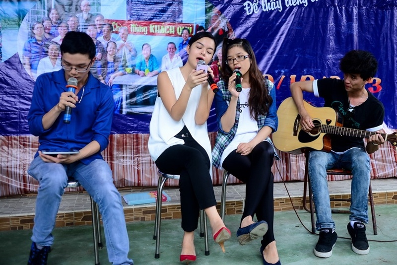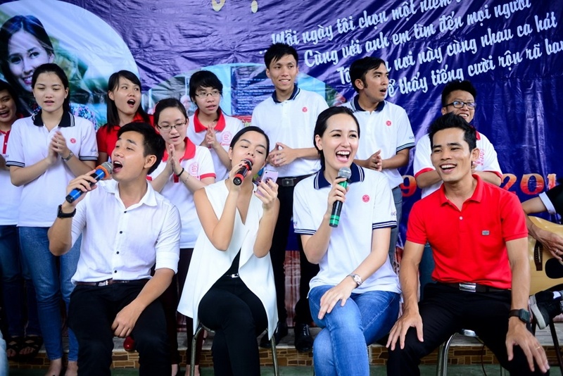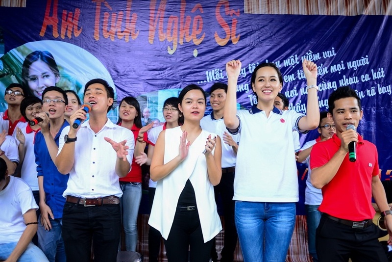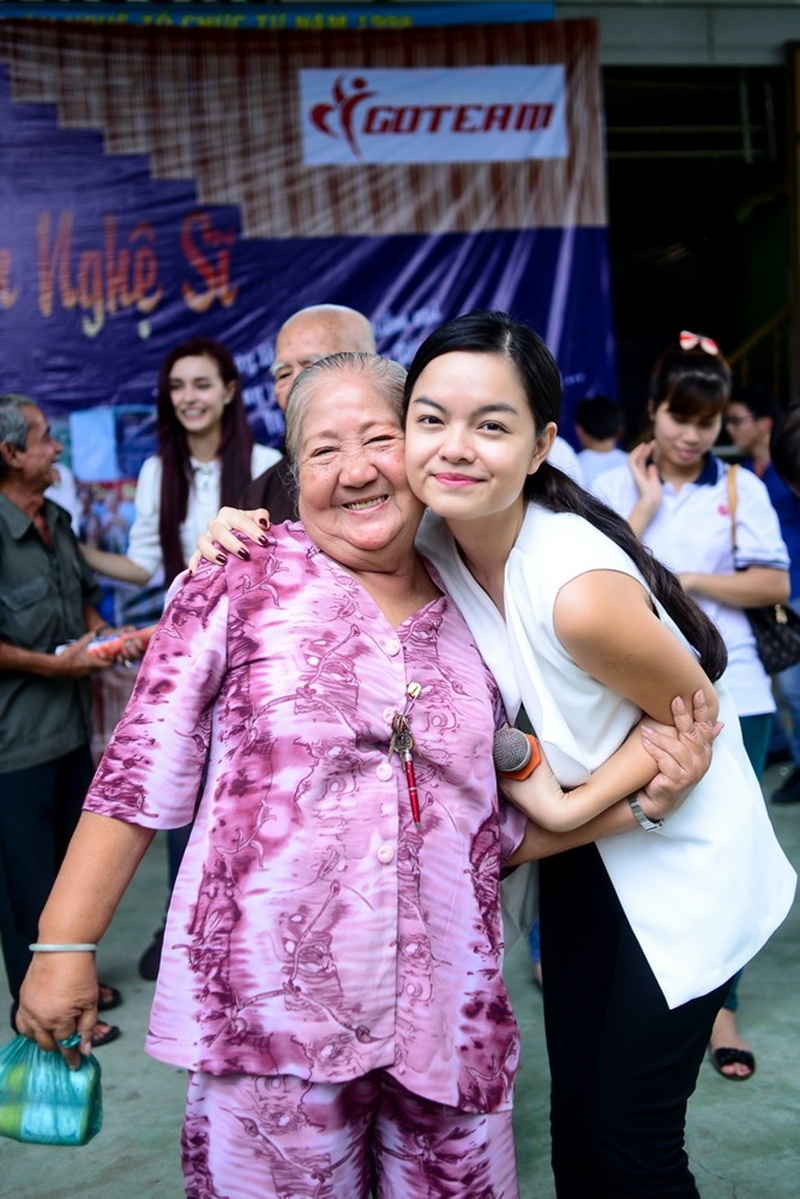 | Nữ ca sĩ Phạm Quỳnh Anh mặc dù bận rộn với dự án phim Thần tượng của ông xã là đạo diễn Quang Huy vẫn dành thời gian đi từ thiện. |