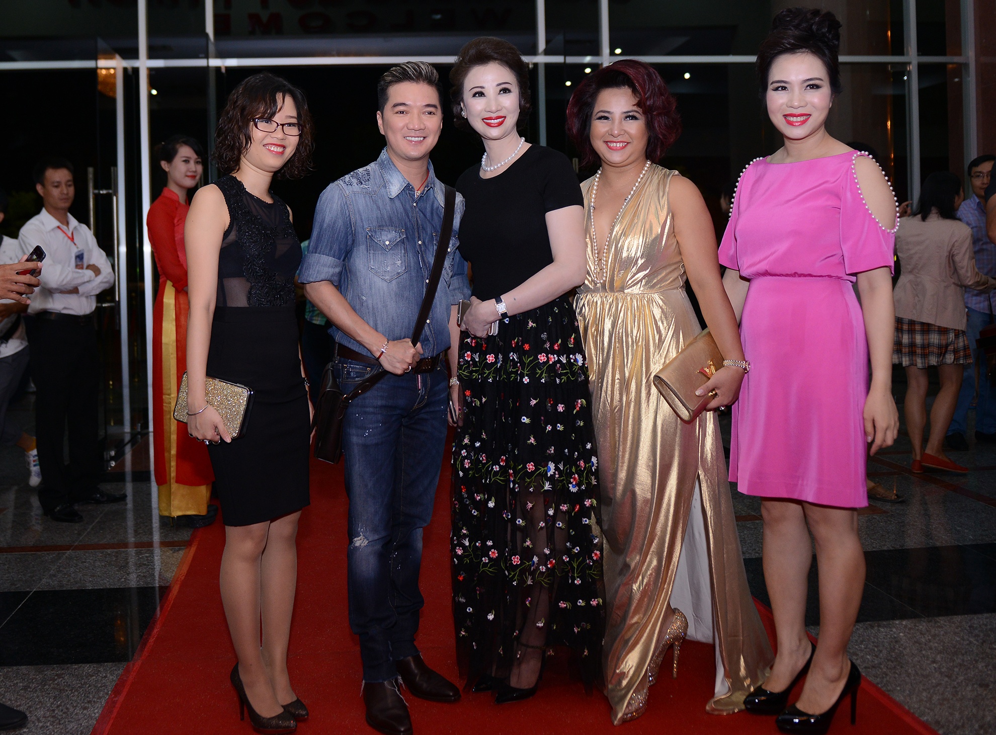 | Đàm Vĩnh Hưng chụp ảnh cùng nhà tài trợ. Bà Lưu Nga (váy hồng) đồng hành cùng cuộc thi từ sơ khảo đến chung kết. Trong đêm thi cuối cùng (3/10), doanh nhân thời trang này sẽ chọn ra thí sinh thể hiện trang phục đẹp nhất. |