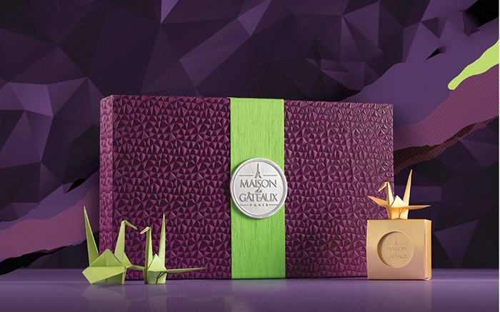 | Theo đuổi xu hướng thiết kế 3D làm mưa làm gió các sàn diễn thời trang năm nay, BST lôi cuốn bởi sắc tím kiêu kỳ "mix and match" táo bạo cùng tông xanh non của thiên nhiên trên chất liệu nổi khối góc cạnh. Giá bán 590.000 đồng/hộp 8 bánh. |