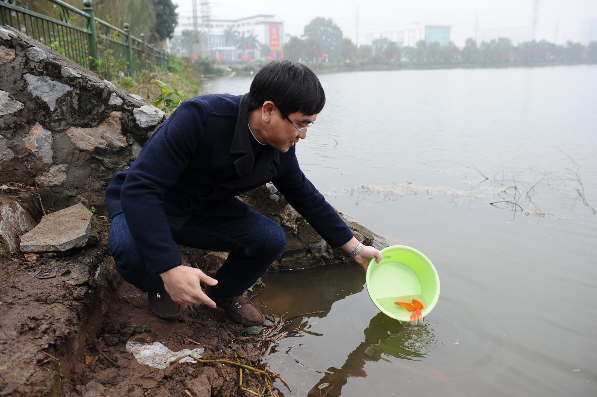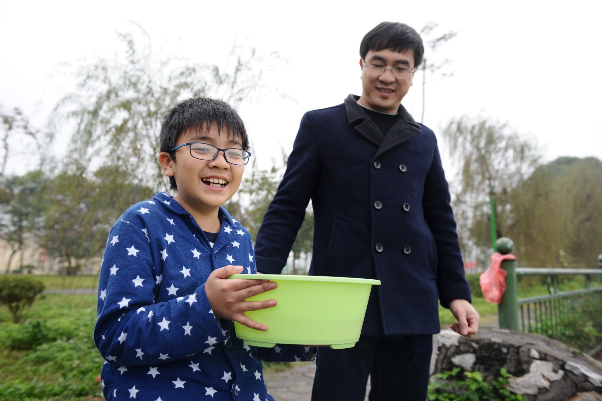 | Sau đó, hai bố con anh Cương (chồng chị Trang) cùng nhau đi thả cá chép ở hồ gần nhà thuộc khu đô thị Việt Hưng. |