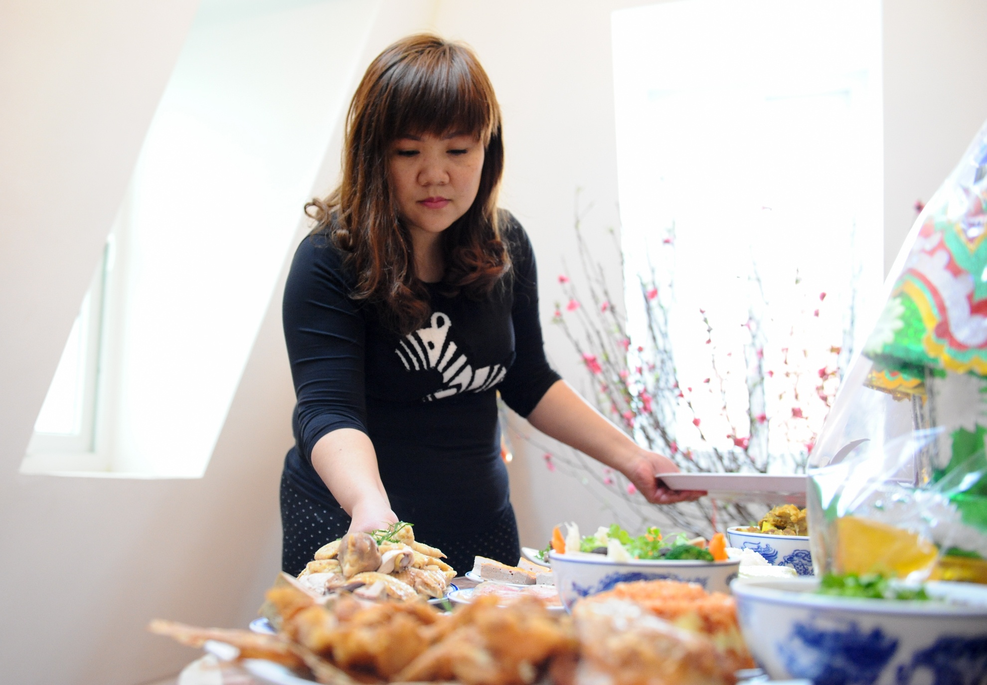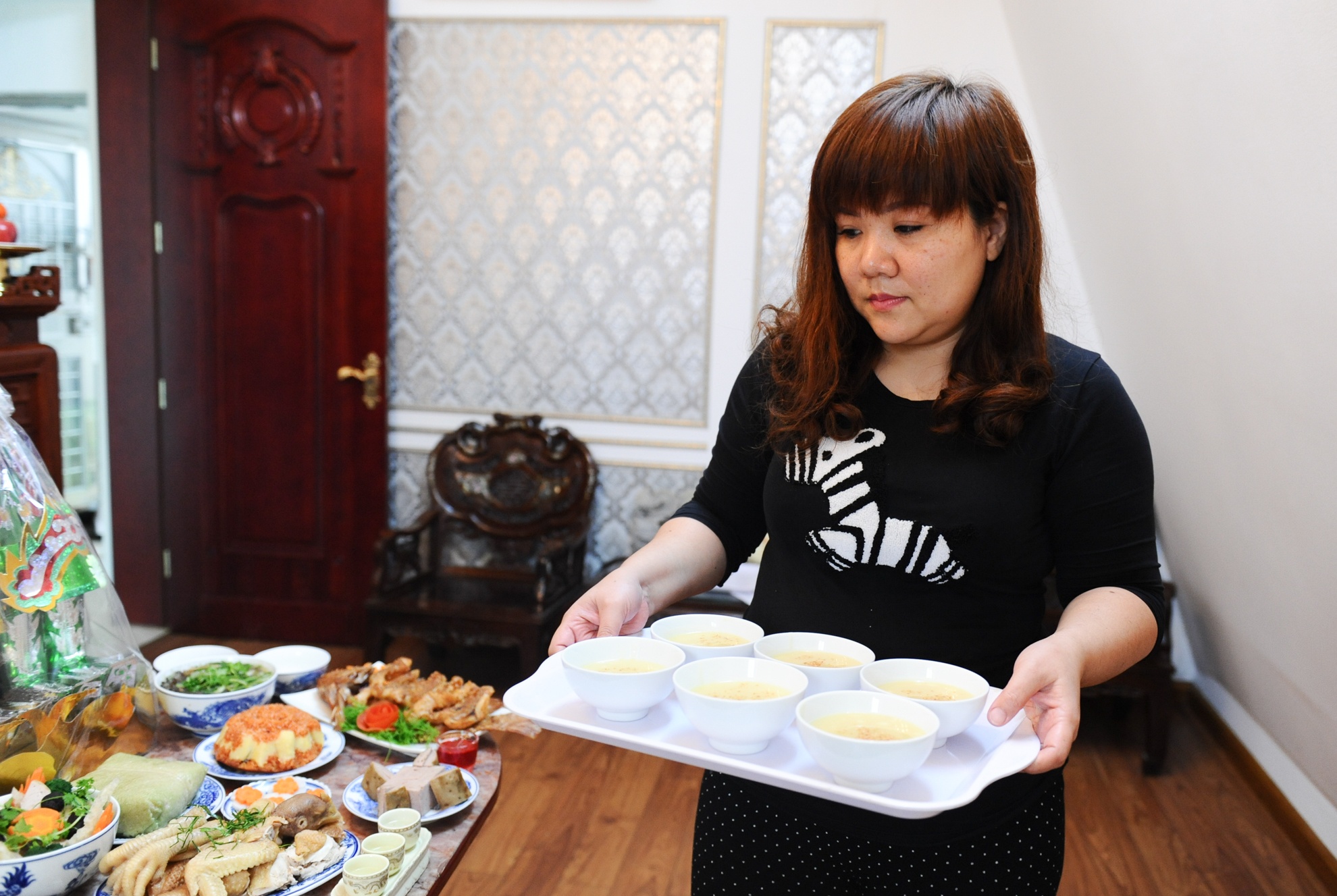 Gia đình chị Đặng Kiều Trang ở quận Long Biên (Hà Nội) làm cỗ cúng sớm chiều 22 tháng Chạp tiễn Táo quân chầu trời. |