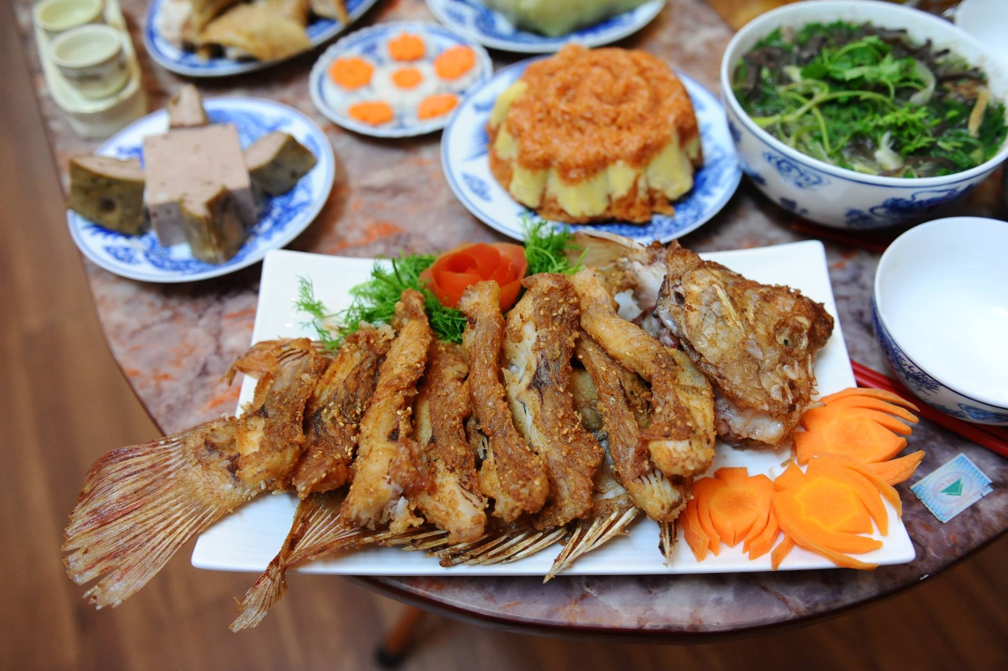 Chị Trang cho biết, mâm cỗ truyền thống thông thường phải có 6 bát, 8 đĩa. Tuy vậy, gia đình chị làm đơn giản hơn cho tiết kiệm. “Nấu thì không khó nhưng vấn đề là không có người ăn”, chị chia sẻ. |