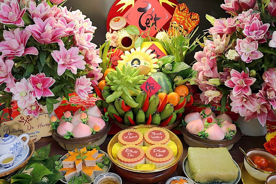 - Mâm ngũ quả: Bao gồm 5 loại quả khác nhau, mỗi loại mang một ý nghĩa tượng trưng cho những ước nguyện của gia chủ như tài lộc, sức khỏe, bình an, hạnh phúc. Các loại quả được chọn phải là quả ăn được, còn tươi, hình thức đẹp, không dập nát hay sâu hỏng. Cách bày trí mâm ngũ quả có thể khác nhau giữa các vùng miền, nhưng đều hướng tới sự cân đối, trang trọng.