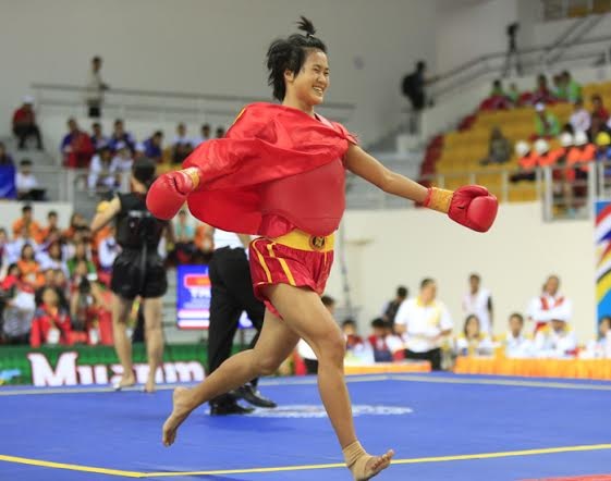 Sau 5 năm theo tập wushu, Thu Hoài có được tấm HCV SEA Games ngay ở lần đầu tiên dự giải.