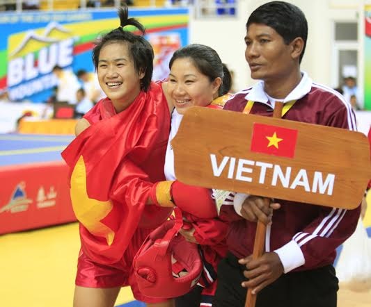 | Nhờ sự động viên của HLV, Thu Hoài đã lấy lại được bình tĩnh. Trước giờ lên sàn đấu, cô thiếu nữ tuổi 17 tự tin tuyên bố sẽ đánh bại đối thủ để giúp wushu Việt Nam có thêm một tấm HCV. |