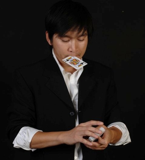 | Palmas Nguyễn biến hóa với bộ bài. Ảnh: Hùng Tiến. |