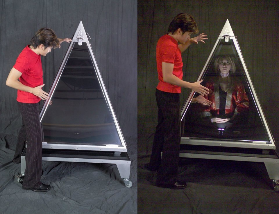 | Các tiết mục ảo thuật biến mất người của Palmas Nguyễn tại nước ngoài. Ảnh: NVCC. |