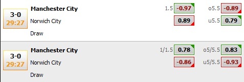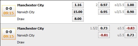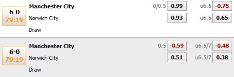 | Tỷ lệ trận Man City - Norwich tính đến phút thứ 10. |