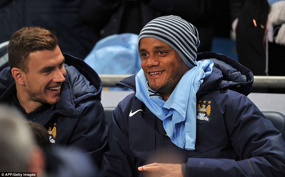 | Trung vệ Vincent Kompany và tiền đạo Edin Dzeko ngồi dự bị. Tuy nhiên, cả hai vẫn rất vui vì màn trình diễn của đồng đội. |