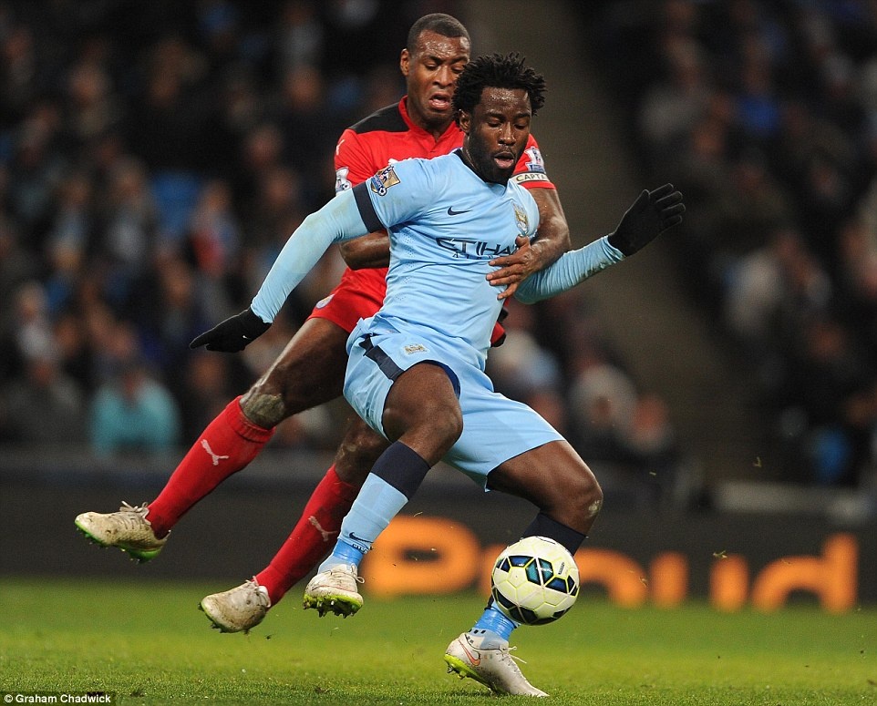 | Tiền đạo tân binh Wilfried Bony vẫn chưa ghi bàn thắng nào trong lần thứ 3 khoác áo Man City. |