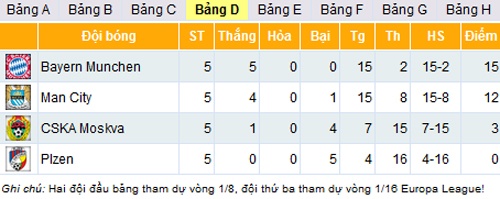 Hạ Plzen 4-2, Man City có được 12 điểm, đứng thứ 2 bảng D với 3 điểm kém hơn Bayern.