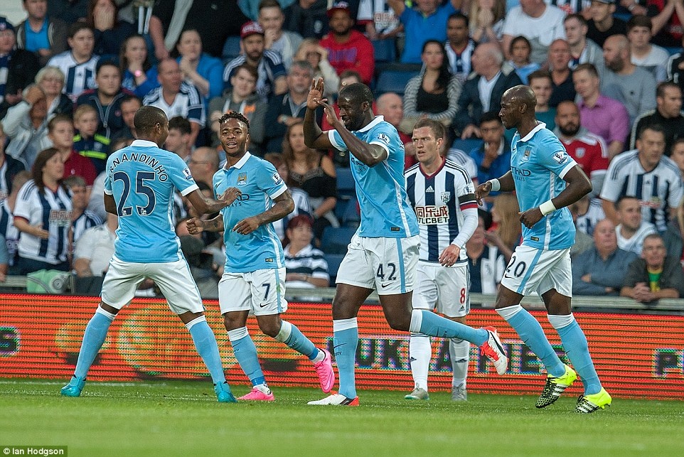 Yaya Toure lập cú đúp sau 24 phút, còn Kompany ghi bàn ấn định chiến thắng 3-0 cho Man City trên sân của West Brom trong trận đấu muộn thuộc vòng 1 Premier League 2015 - 2016.