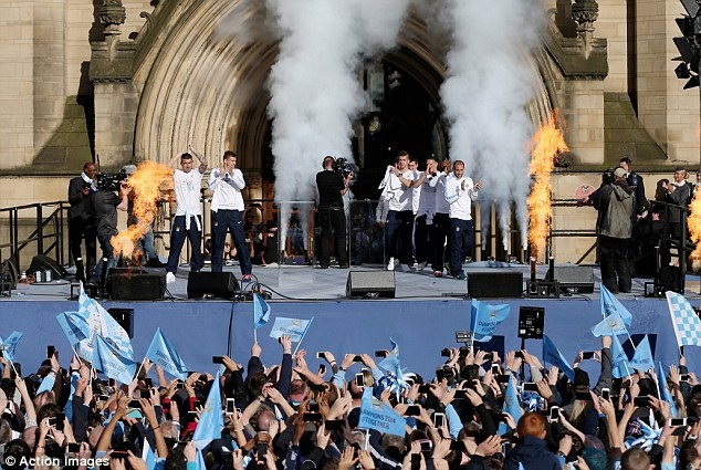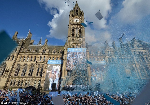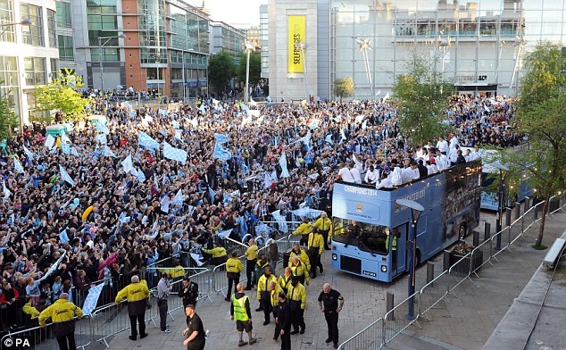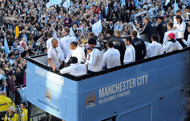 | Rất đông CĐV Man City cùng chia vui với thầy trò HLV Pellegrini. |