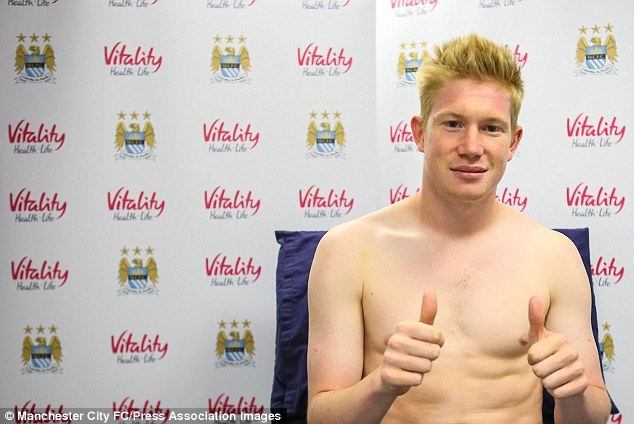 | Kevin De Bruyne vượt qua buổi kiểm tra y tế bắt buộc ở Man City. Anh trở thành tân binh mới nhất của Man xanh sau Raheem Sterling, Nicolas Otamendi và Fabian Delph hè 2015. |