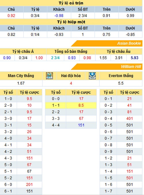Mục tiêu giành chiến thắng trước Everton sẽ không dễ dàng cho thầy trò HLV Pellegrini. Đến thời điểm hiện tại, đội chủ sân Goodison Park dưới triều đại của HLV Martinez vẫn đang bất bại với thành tích thắng 3 và hòa 3. Kết quả thi đấu trên giúp Everton góp mặt trong Top 4.