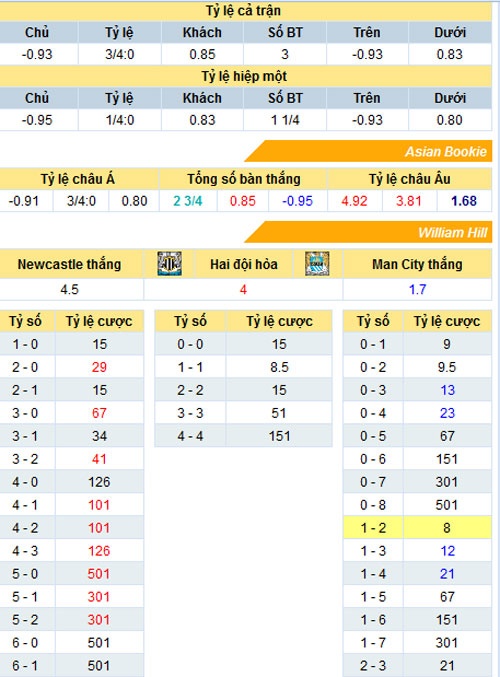 Trong 14 trận gặp nhau gần đây giữa hai đội, Newcastle chỉ có được 2 trận hòa và để thua tới 12 trận. Đầu mùa giải năm nay, Chích chòe cũng đã thất bại 0-4 trước Man xanh trên sân Etihad. Dù gã nhà giàu vùng Eastlands sẽ khó lập lại được trận thắng với tỷ số cách biệt trên, nhưng một chiến thắng hoàn toàn nằm trong tầm tay của thầy trò HLV Pellegrini.