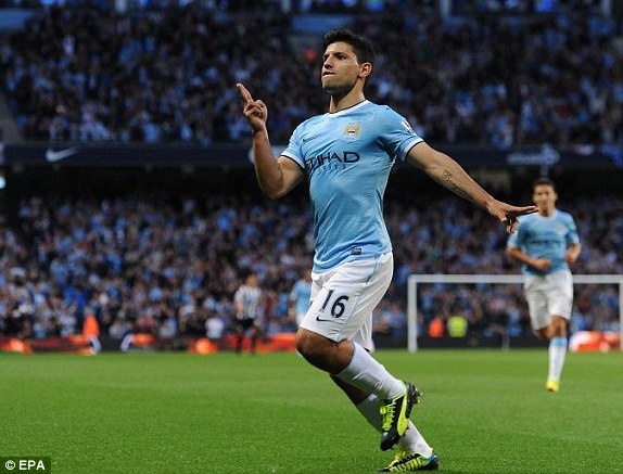 | Pha bóng Sergio Aguero nâng tỷ số lên 2-0. |
