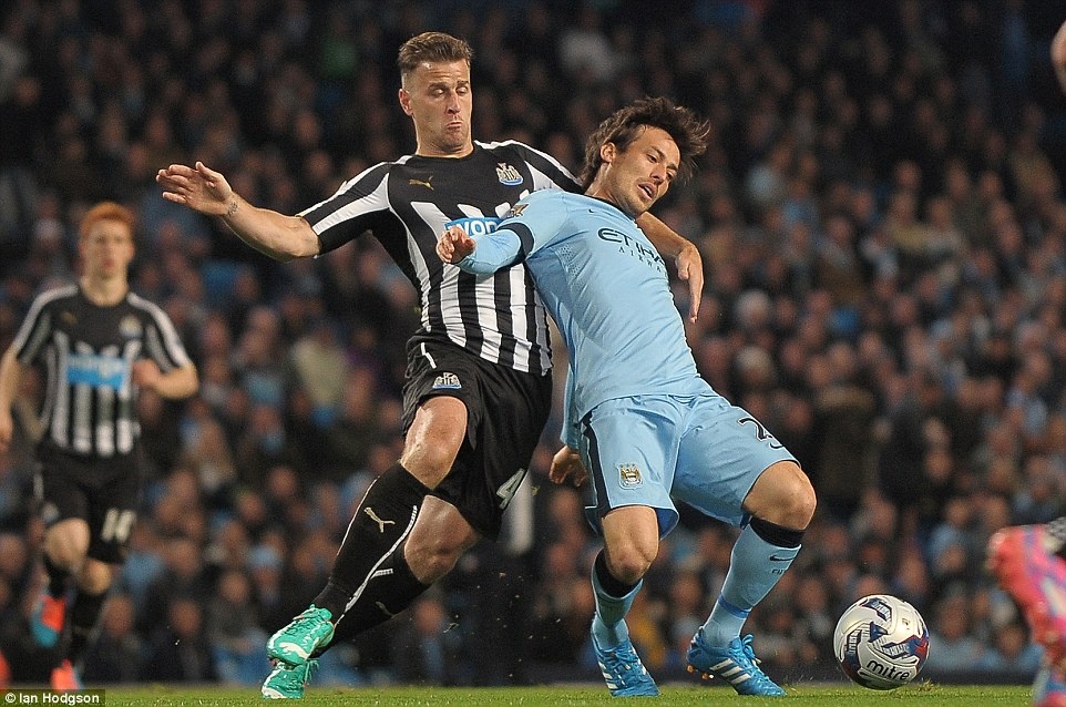 Sau thất bại trước West Ham tại Premier League cuối tuần qua, Man City tỏ rõ quyết tâm giành chiến thắng trong cuộc tiếp đón Newcastle tại vòng 4 cúp Liên đoàn. HLV Manuel Pellegrini tung vào sân đội hình khá mạnh: Caballero; Sagna, Demichelis, Mangala, Kolarov; Fernandinho, Toure (Navas 59') ; Milner, Jovetic, Silva (Nasri 8' (Aguero 69')); Dzeko.