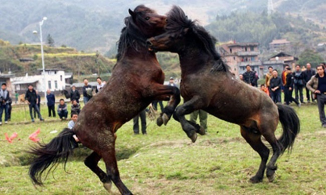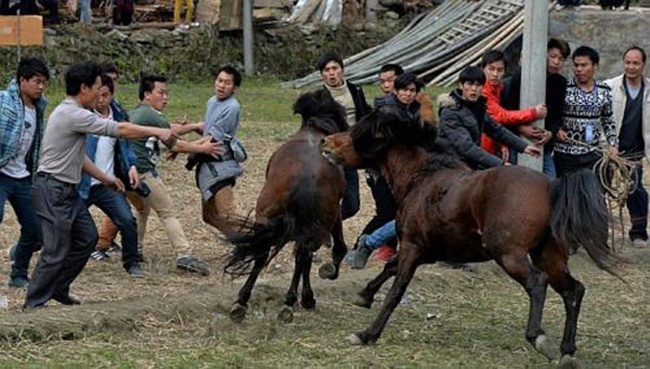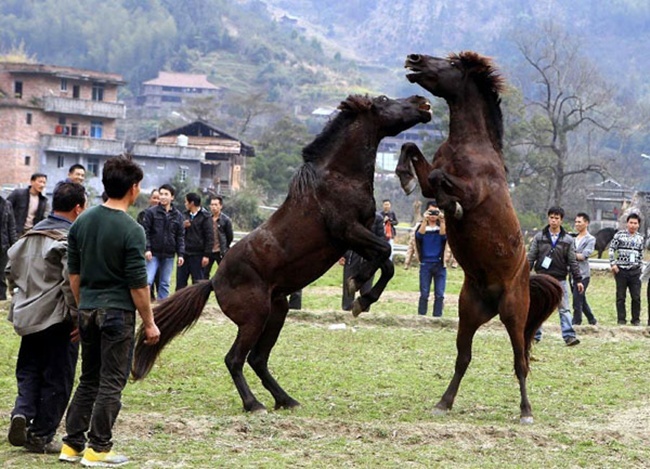 | Tại ngôi làng ,nơi sinh sống của người Miao - một dân tộc sống ở vùng núi của miền nam Trung Quốc, truyền thống đấu ngựa đã kéo dài 500 năm. |