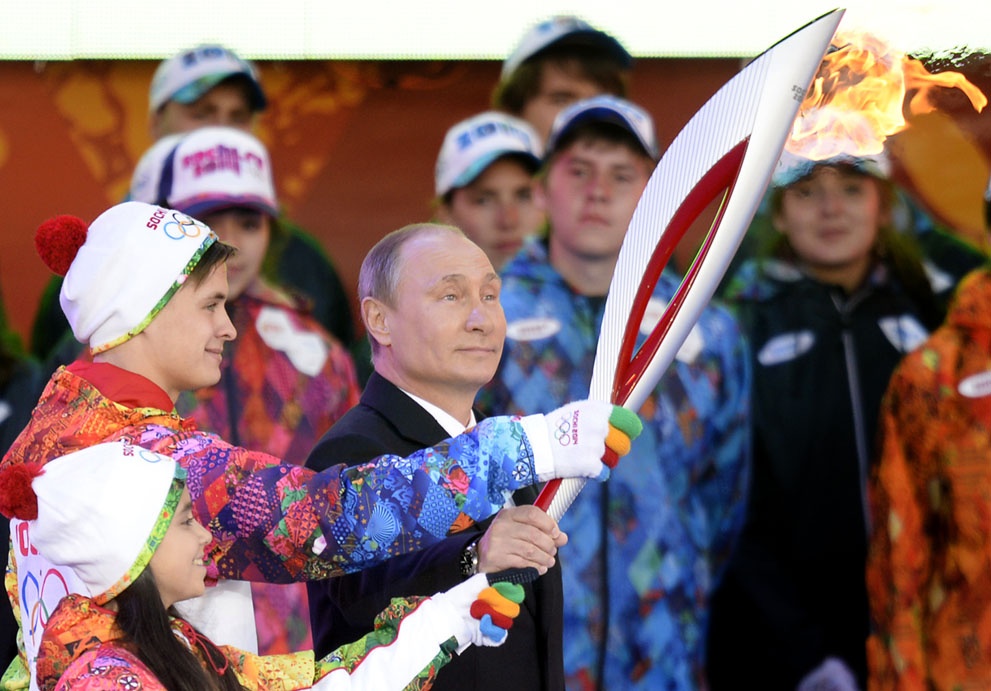 Tổng thống Nga Vladimir Putin thắp đuốc Thế vận hội trên Quảng trường Đỏ đánh dấu hành trình rước đuốc xuyên nước Nga nhân sự kiện Thế vận hội Sochi 2014.