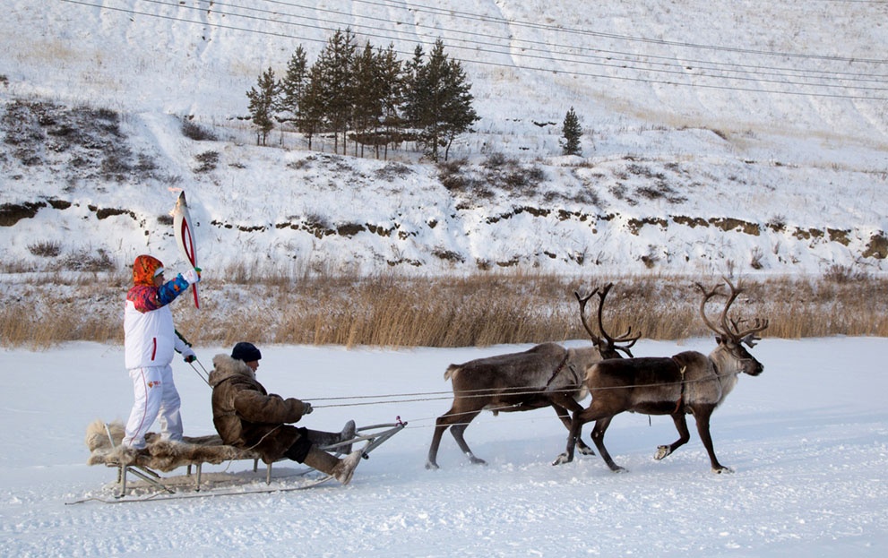Tuần lộc kéo xe trượt tuyết đưa người rước đuốc tới thành phố Siberia của Yakutsk.