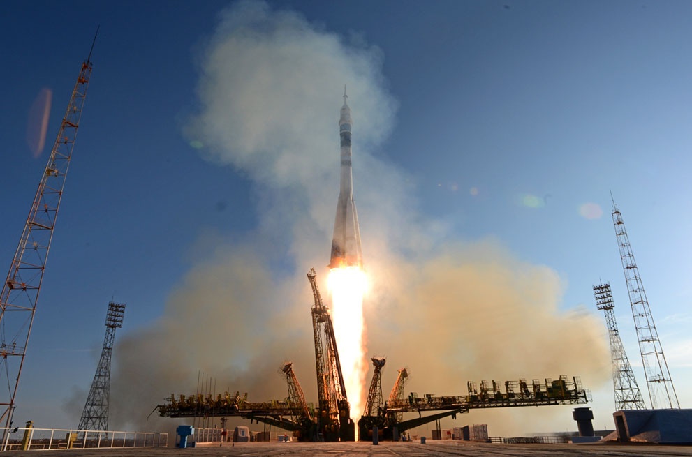 | Tàu vũ trụ của Nga Soyuz TMA-11M mang theo phi hành đoàn quốc tế để thắp ngọn đuốc trên vũ trụ. |