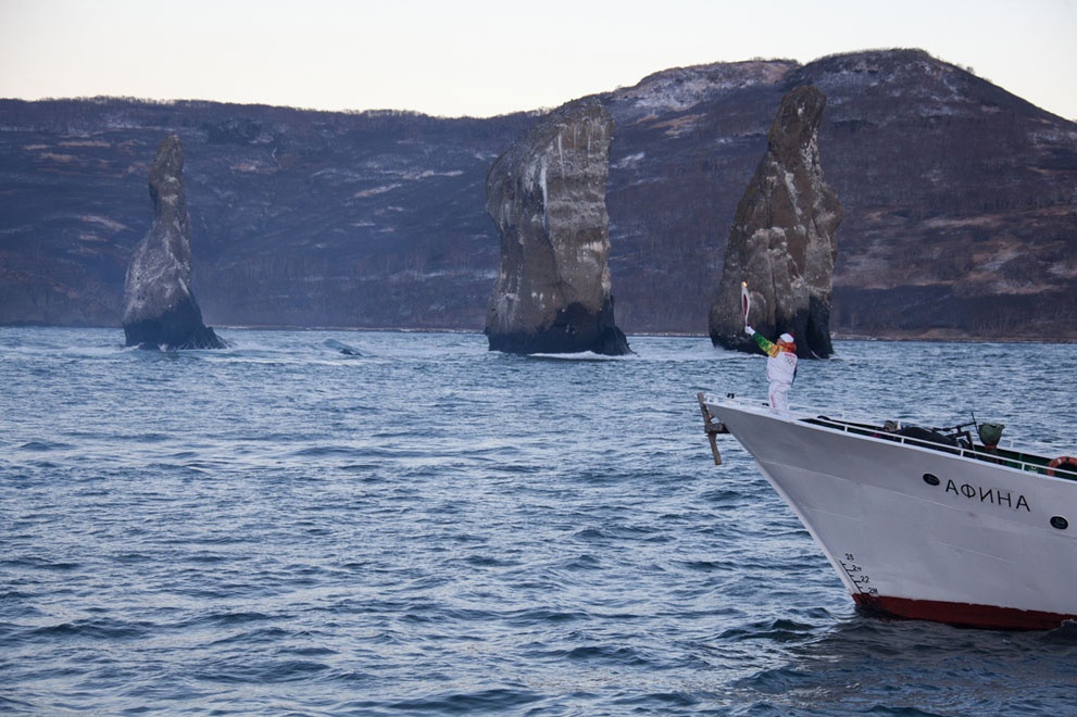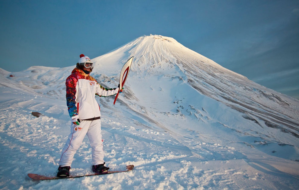 Ngọn đuốc được mang tới núi lửa Avachinsky, gần Kamchatka Peninsula.