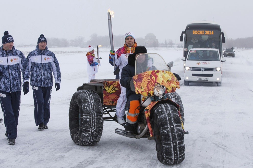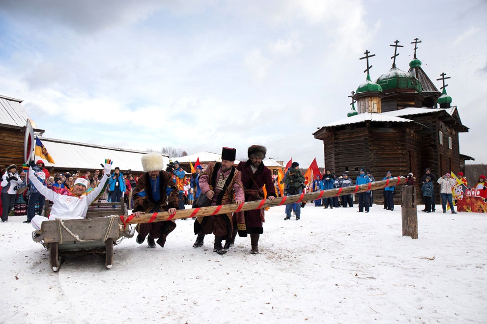 Alexander Svetlichnykh mang ngọn đuốc Olympic tới đặt ở Tyumen, Siberia