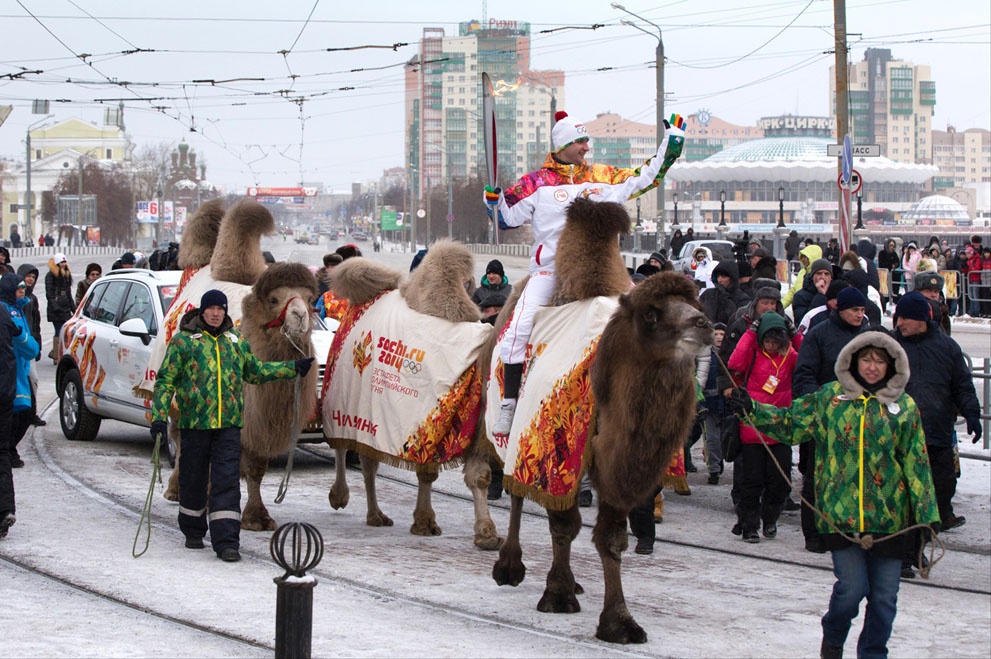 Rước đuốc bằng lạc đà tại Chelyabinsk.