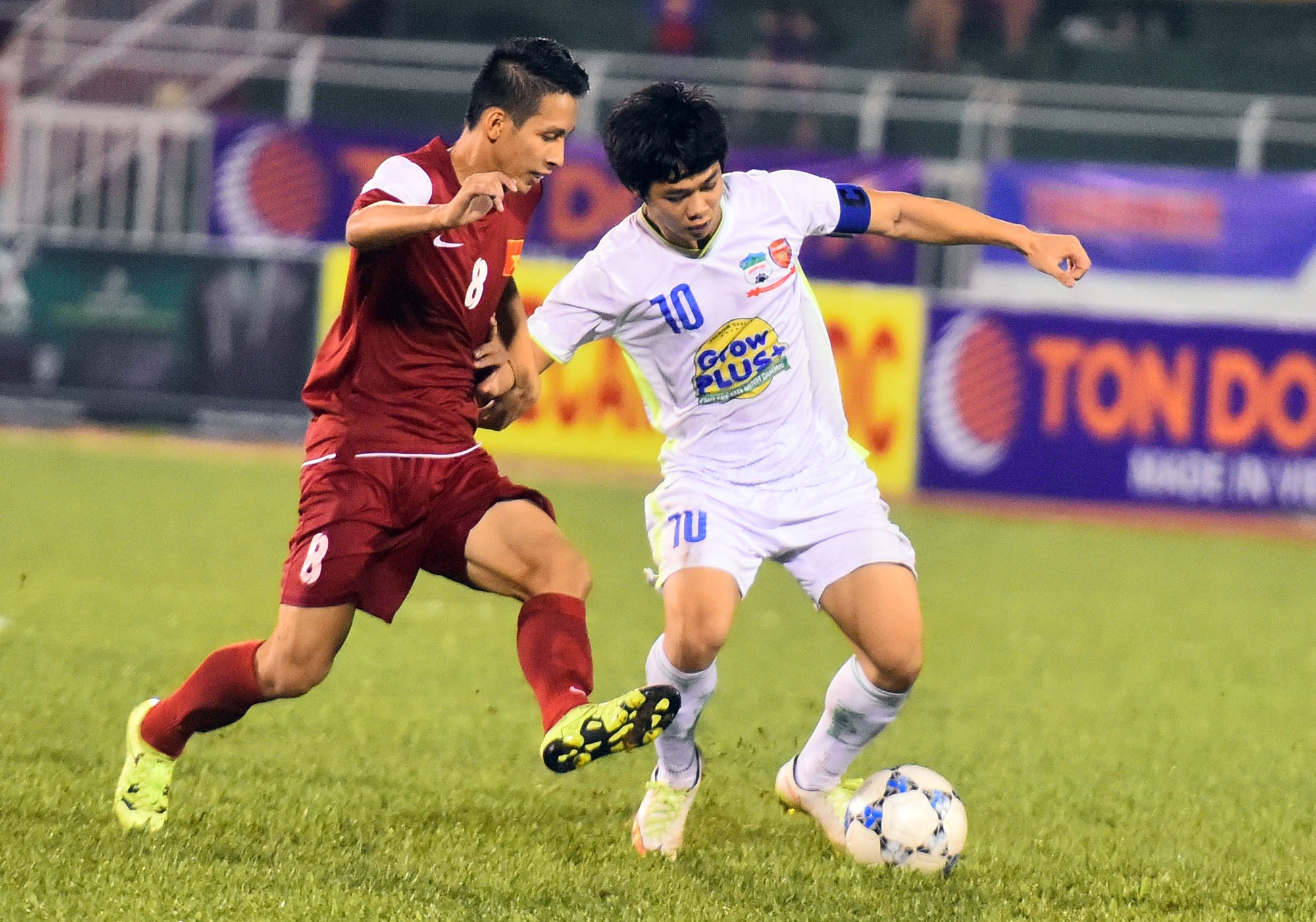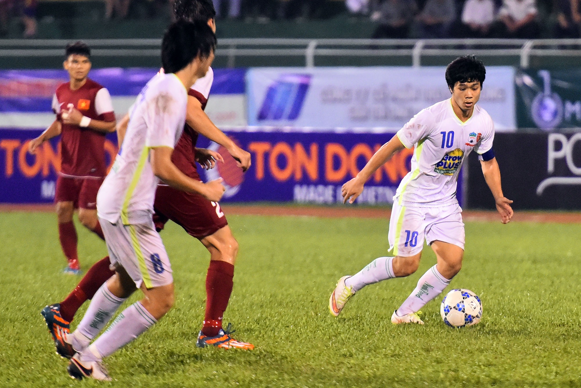 Dù bị kèm cặp rất chặt , Công Phượng vẫn thể hiện phẩm chất kỹ thuật của mình với nhiều pha đi bóng lắt léo.