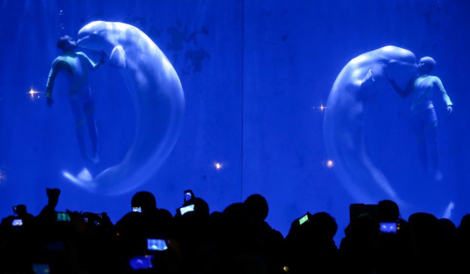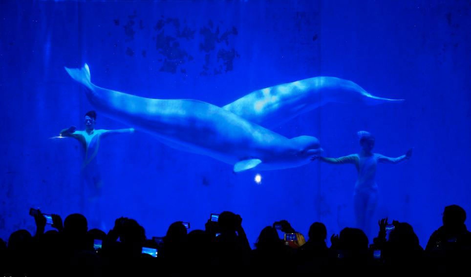| Màn trình diễn của cá voi trắng thu hút sự chú ý của nhiều du khách trong thủy cung. Ảnh: Getty Images |