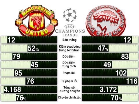 | Tương quan M.U - Olympiakos ở Champions League mùa này. |