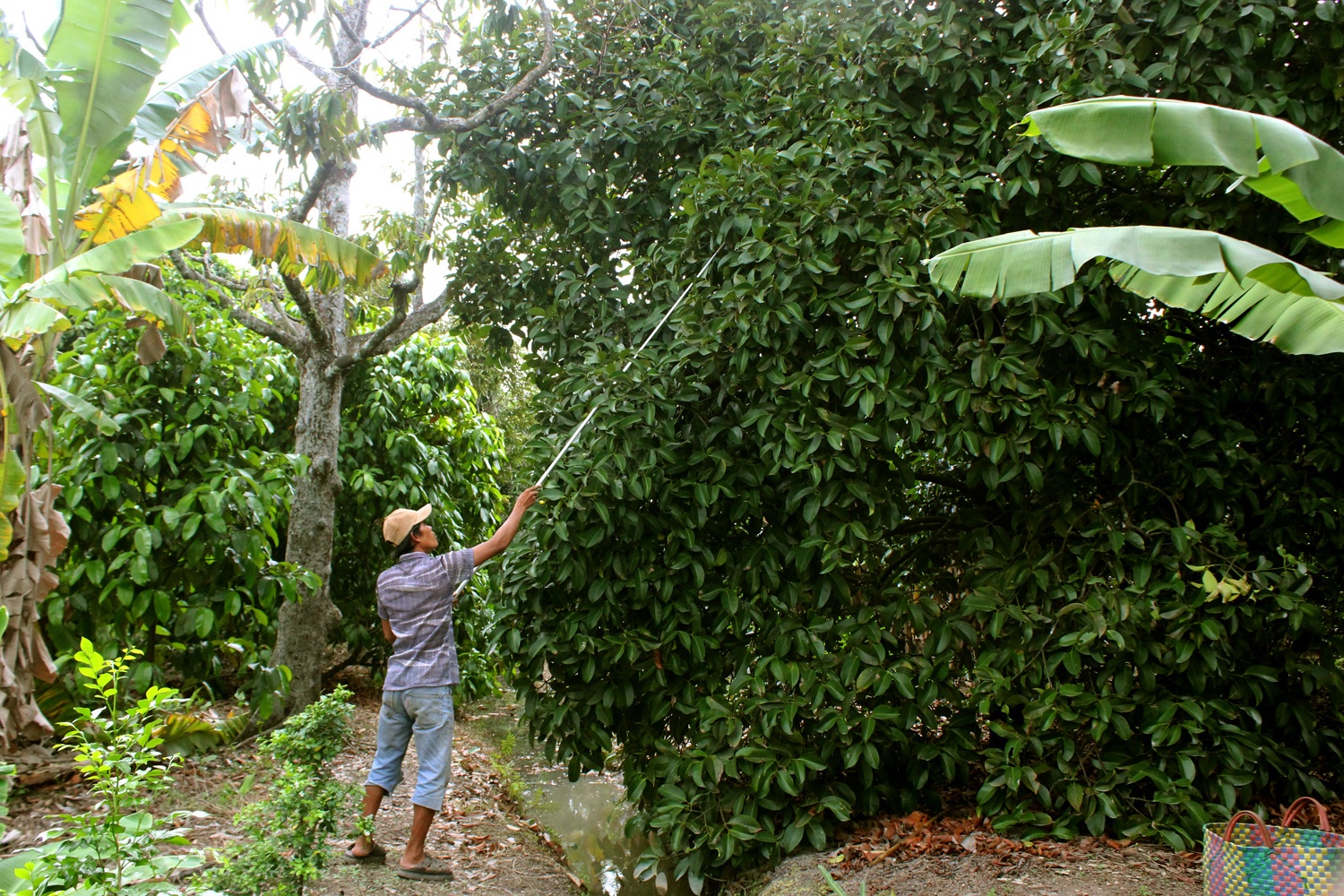 Ông Bảy Sửa ở xã An Mỹ, An Thạnh, Bình Dương cho biết, nhiều cây già cỗi trong vườn đã được chặt bỏ để thay mới. Hơn 10 năm nữa, cây mới trồng sẽ cho trái, nụ.