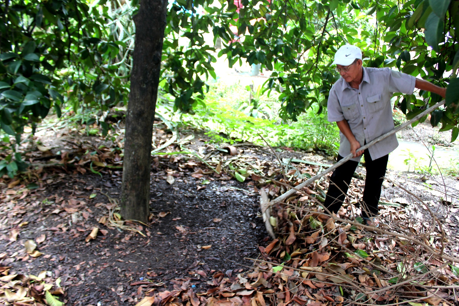 Cuối vụ, nhà vườn sẽ dọn sạch lá dưới gốc để bón phân, dọn mương nước, cắt cỏ, chuẩn bị cho vụ sau.