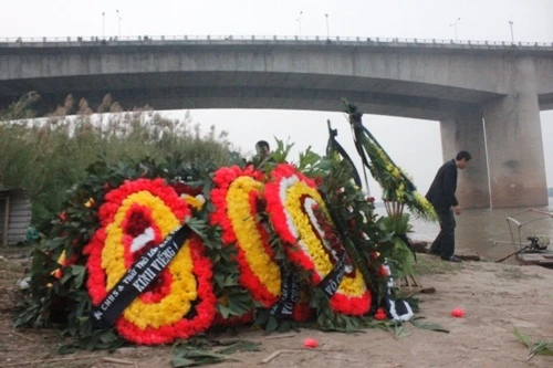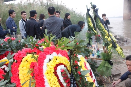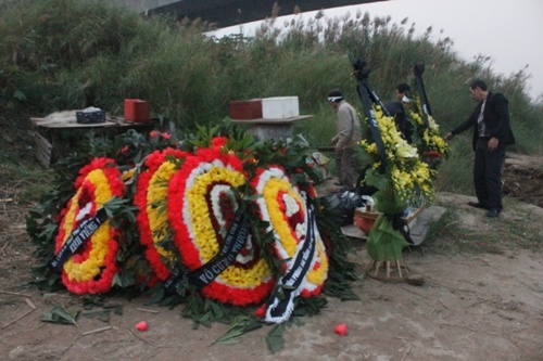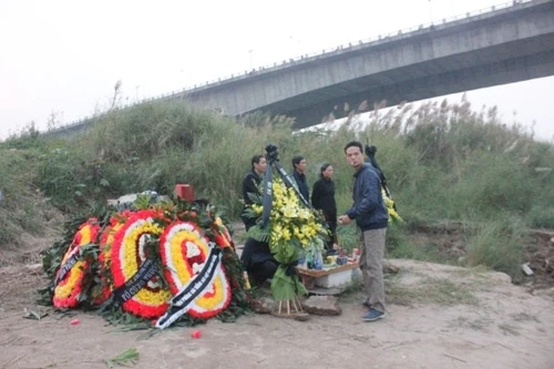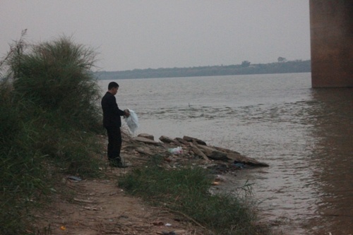 | Làm nghi lễ ngay tại khúc sông dưới nhịp cầu mà bác sĩ Tường ném xác. |