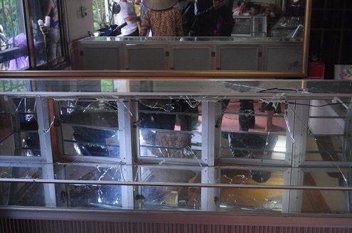| Hiện trường vụ cướp tiệm vàng Ngọc Bốn. |