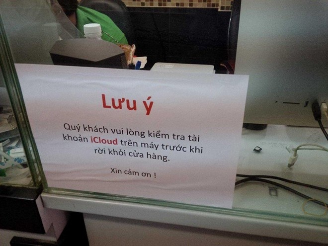 | Tấm biển nhắc nhở sau hàng loạt sự cố về iCloud do nhiều khách gây ra tại một cửa hàng ở TP.HCM. Ảnh: Thành Nguyễn. |