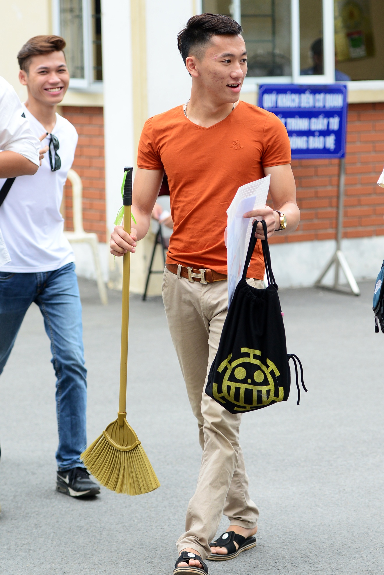 | Có thí sinh nam còn mang theo cả chổi làm đạo cụ dự thi. Theo quy định, thí sinh được mang vật dụng, đạo cụ cần thiết vào phòng thi, trừ điện thoại di động và các thiết bị điện tử ghi phát sóng, truyền dẫn tín hiệu theo quy định của Bộ GD&ĐT. |