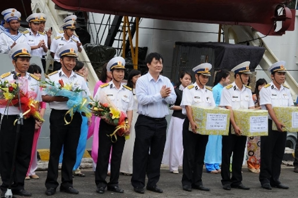 | Các tập thể, cá nhân lần lượt xuống các tàu để xuất phát theo 3 tuyến đi 3 hướng Bắc – Trung – Nam của quần đảo Trường Sa. Nhân dịp chuẩn bị bước sang năm mới, thay mặt lãnh đạo tỉnh, ông Hải cũng gửi lời chúc sức khỏe của Đảng bộ, chính quyền và nhân dân tỉnh Khánh Hoà tới toàn thể cán bộ, chiến sĩ và nhân dân đang sinh sống trên quần đảo thiêng liêng của tổ quốc. |