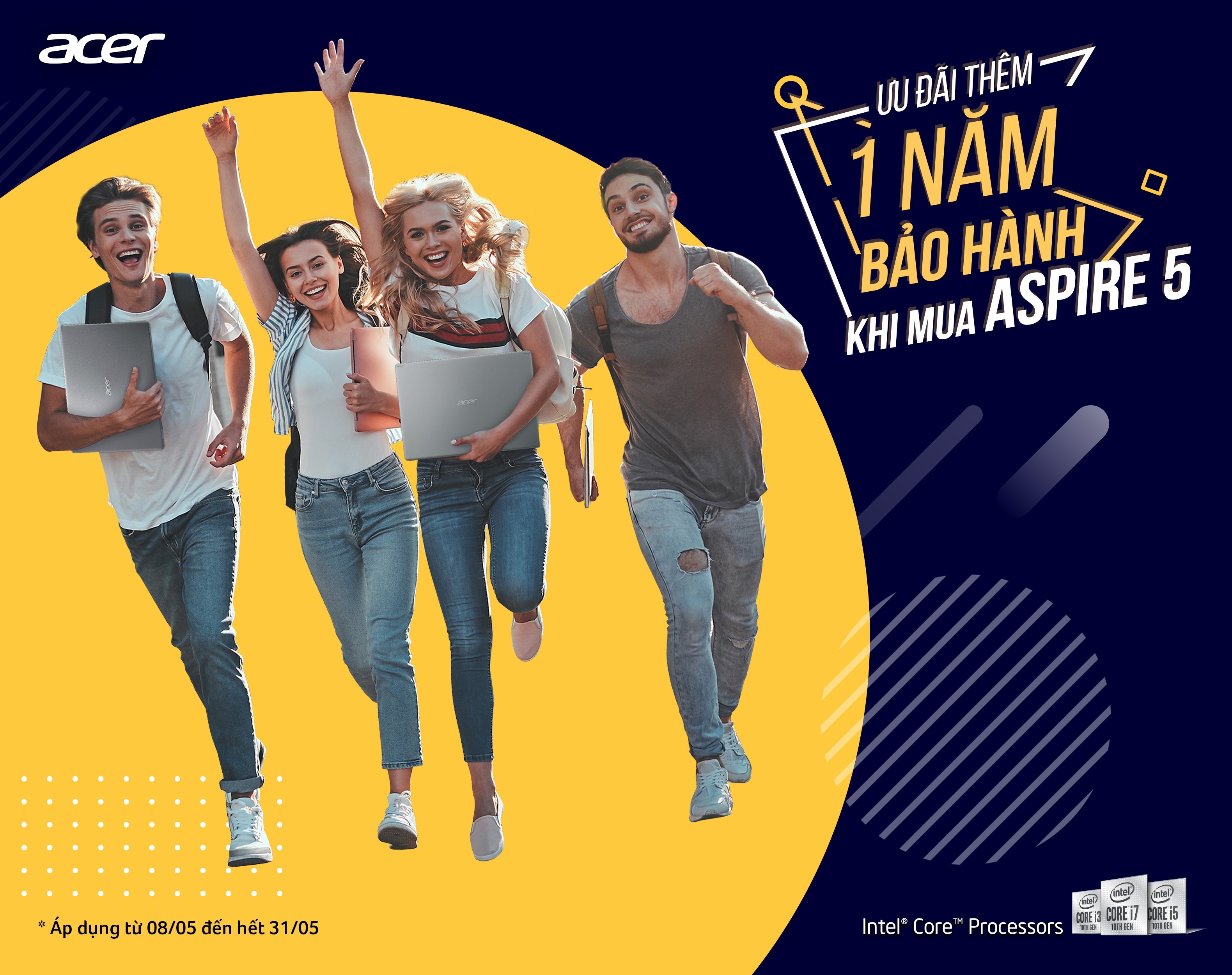 Từ ngày 8/5 đến 31/5, khi mua laptop Aspire 5 tại các đại lý trên toàn quốc, khách hàng được ưu đãi thêm một năm bảo hành chính hãng Acer Việt Nam. Khách hàng xem danh sách đại lý kinh doanh sản phẩm Acer tại đây.
