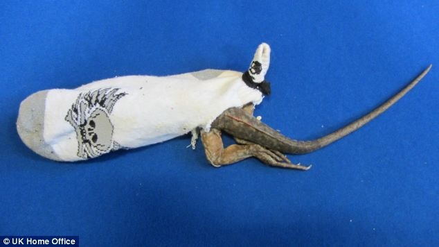 Lực lượng kiểm soát biên giới Anh đã phát hiện những kẻ buôn lậu vận chuyển kỳ nhông quý hiếm bằng cách giấu chúng trong tất.