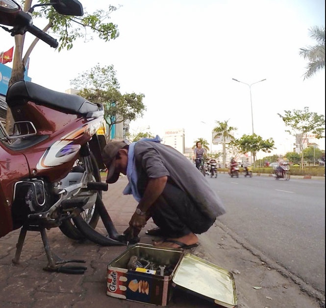 Xong xuôi, Phong lấy giá thay ruột 100.000 đồng. Tiếp theo chúng tôi là một người đàn ông chạy xe Honda Dream đến chỗ Phong vá xe. Tất nhiên, kết cục vẫn là phải thay ruột, đồng thời bị “luộc” luôn IC.