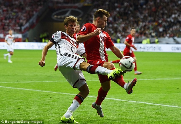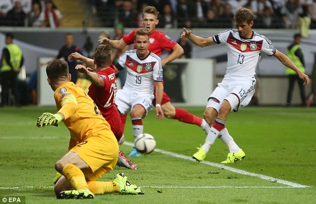 Đội tuyển (ĐT) Đức dẫn trước ĐT Ba Lan sau pha ghi bàn của Thomas Mueller ở phút 12.
