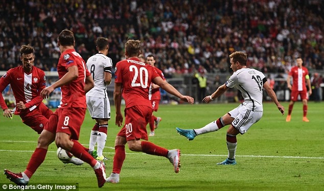 Sau khi đi bóng vào khu vực 16m50, Mario Goetze dứt điểm vào góc gần khiến thủ môn Fabianski của ĐT Ba Lan không thể cản phá.