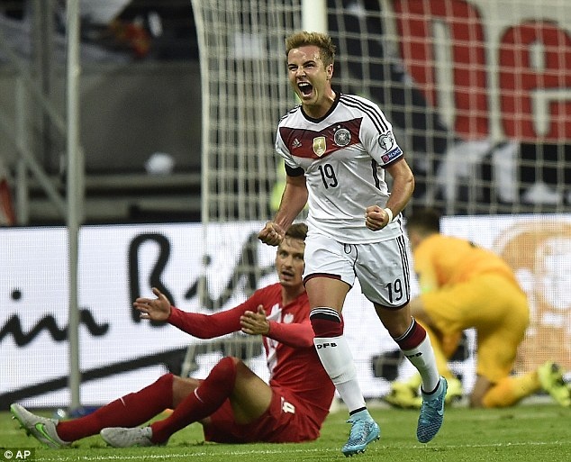 Phút 82, Mario Goetze hoàn tất cú đúp khi nâng tỷ số lên 3-1 cho ĐT Đức.