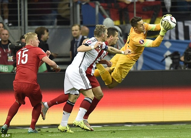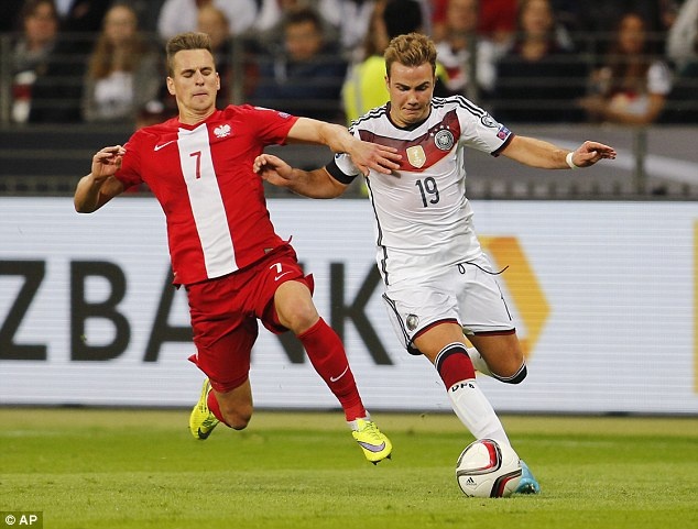 Sau khi thủ môn Lukasz Fabianski đẩy bóng cản phá cú sút của Mueller, tiền vệ Goetze dứt điểm bồi làm tung lưới ĐT Ba Lan.