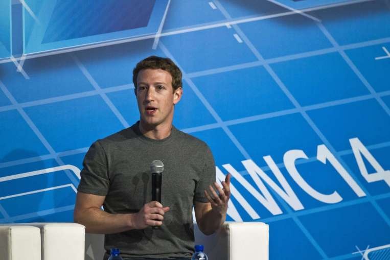 Người sáng lập Facebook Mark Zuckerberg tại một phiên họp quan trọng trong ngày khai mạc của Đại hội Thế giới Di động ở Barcelona, Tây Ban Nha ngày 24/2/2014. Ảnh: Bloomberg |